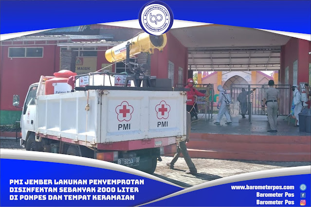 Jember, Barometerpos.com Dengan membawa 2000 liter cairan disinfektan, relawan PMI pada Selasa,(27/7/2021) melakukan penyemprotan di 4 lokasi kawasan selatan Kabupaten Jember termasuk diantaranya sarana pendidikan dan tempat keramaian masyarakat.